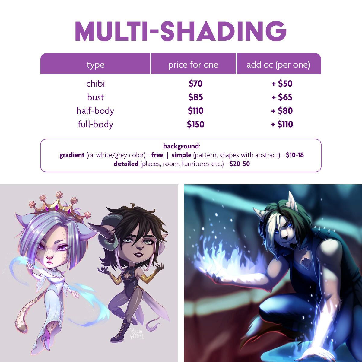3. With a cell-shading or multishading (etc.), I will send you a progress with concept art -> sketch -> lineart with flats to preview and accept it.contact and payment